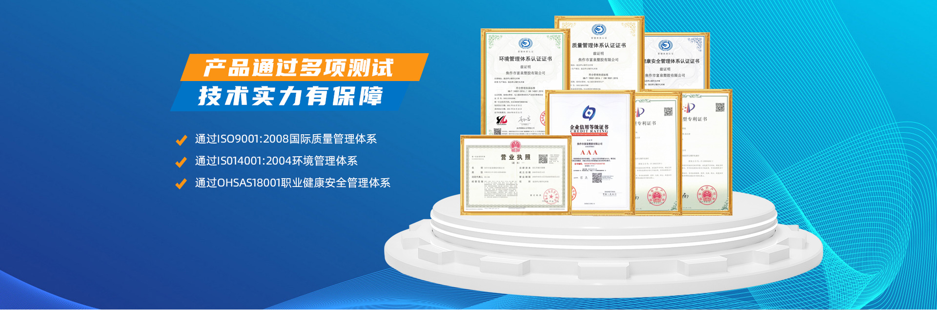 - 焦作市富泉塑胶有限公司,创立于1995年,是一家集研发、设计、生产、销售为一体的大型管材企业。公司位于太极故里、黄河之滨一一河南焦作温县。公司占地128亩,现有职工210余人,其中具有中技术职称的19人。生产、检验设备58台(套),包括PVC实壁管生产线11套、PE实壁管生产线12套、HDPE双壁波纹管生产线6套、PVC双壁波纹管生产线5套,检验设备14台(套)。主要产品有:Φ20mm-630mm、各种压力规格的PVCU、PVC-M、PE给水管材,PVC-U节水灌溉管材,HDPE燃气和矿用管材,DN200-800mm的HDPE、PVC双壁波纹管及各种喷灌、滴灌工程材料。承接大中型市政供排水、饮水安全及节水灌溉等工程?! 「蝗芙汗局厥硬返闹柿俊踩⒒繁:徒谀埽谕幸抵新氏韧瓿闪恕靶禄谒啡现ぁ?,全方面通过ISO9001:2008国际质量管理体系、IS014001:2004环境管理体系和OHSAS18001职业健康安全管理体系的一体化导入,并建立起规范的现代企业管理体系。公司以“质量”为先导,采用质量跟踪、多环节把关的方法,组建具有行业水准的企业技术检测中心,常年委托水利部节水灌溉设备检测中心、河南省产品质量监督检验院对产品跟踪检测,并由中国人民保险公司承保产品质量。公司连续多年被河南省水利厅确定为“安全饮水设备、节水灌溉设备”定点生产企业,并获得“中国名优产品”“质量、服务、信誉AAA企业”“河南省**产品”“河南省水利企业”“河南省守合同、重信用企业”等荣誉称号。 富泉塑胶公司坚持“用户为上”的服务理念,长期以来,全方面关注客户价值,不断提升服务水平。服务队伍常年为客户的产品设计、施工、安装提供合理的方案和全程细致、周到、**、快捷的技术服务。公司自成立以来,一直坚持以人为本的宗旨,塑造企业形象,并致力于新产品的开发,凭借雄厚的技术开发能力,先进的工艺制造流程,严格的质量管理保证体系,优良的售后服务网络,已成为河南省大的饮水、灌溉及排水管材设备制造商。产品畅销全国,而且还以公司雄厚的综合实力在业界中占据着重要的地位。